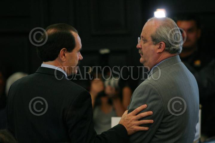 MÉXICO D.F., 03ABRIL2008.- Los senadores Jorge Mendoza Garza y Ramón Muñoz Gutiérrez, durante la sesión en la Cámara de Diputados. FOTO: CUARTOSCURO.COM