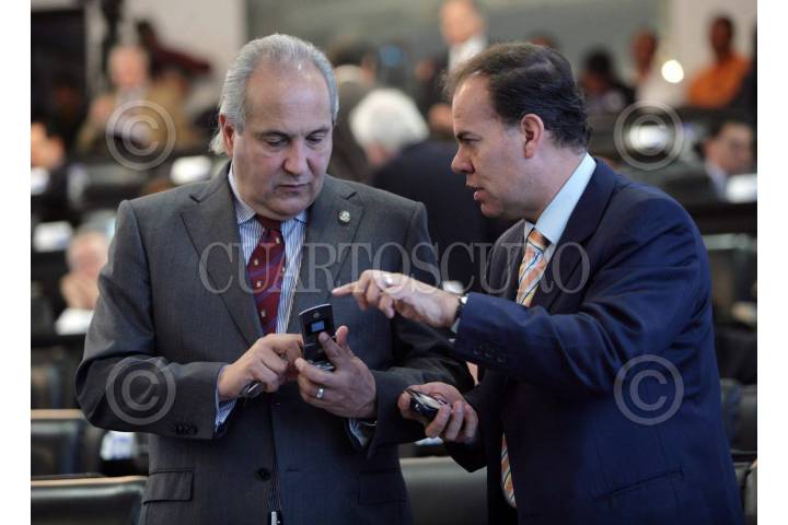 MÉXICO D.F., 03ABRIL2008.- Los senadores Jorge Mendoza Garza y Ramón Muñoz Gutiérrez, durante la sesión en la Cámara de Diputados. FOTO: CUARTOSCURO.COM