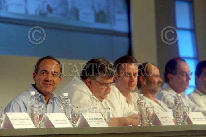MÉXICO, D.F., 04ABRIL2008.- El presidente Felipe Calderón durante la comida en el marco del Encuentro del Consejo Empresarial Mexicano de Comercio Exterior, Inversión y Tecnología. FOTO: RODOLFO ANGULO/CUARTOSCURO.COM