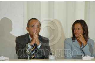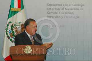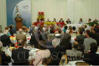 MÉXICO, D.F., 04ABRIL2008.- El presidente Felipe Calderón durante la comida en el marco del Encuentro del Consejo Empresarial Mexicano de Comercio Exterior, Inversión y Tecnología. FOTO: RODOLFO ANGULO/CUARTOSCURO.COM