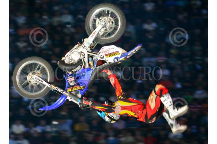MÉXICO D.F., 04ABRIL2008.- El piloto suizo Mat Rebeaud salta con su motocicleta durante los Red Bull X Fighters que se realiza en la Plaza de Toros México. FOTO: RODOLFO ANGULO/CUARTOSCURO.COM