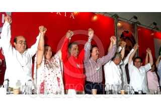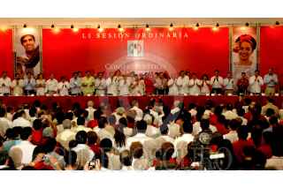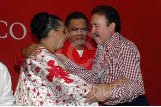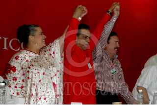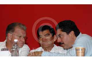 BOCA DEL RÍO, VERACRUZ, 05ABRIL2008.- Beatriz Paredes Rangel, dirigente nacional del PRI, Fidel Herrera Beltrán, gobernador de Veracruz y Emilo Gamboa Patrón, diputado federal, al finalizar los trabajos de la LI sesión ordinaria del consejo político nacional del tricolor en las instalaciones del WTC de esta ciudad. FOTO: JOSÉ CANDELARIO/CUARTOSCURO.COM