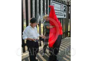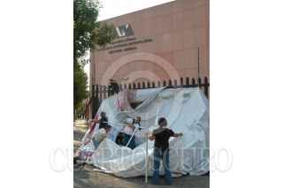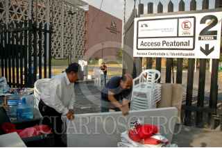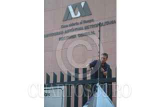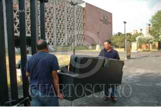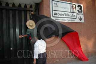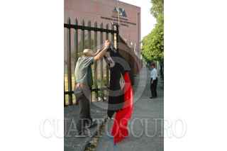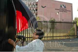 MÉXICO D.F., 05ABRIL2008.- Trabajadores de la Rectoria General de la Universidad Autónoma Metropolitana (UAM) retiran las banderas rojinegras de huelga tras 63 días en paro y después de haber llegado a un acuerdo autoridades de la universidad y autoridades sindicales. FOTO: RODOLFO ANGULO/CUARTOSCURO.COM