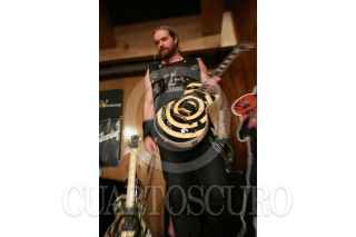MÉXICO D.F., 07ABRIL2008.-Zakk Wylde, gutarrista del grupo de Ozzy Osbourne realizó la firma de autogarfos en una tienda de instrumentos musicales ubicada en la calle de Durango y donde anticipo que la lesión de su dedo no le impidira realizar la presentación comprometida para el día de mañana. FOTO: GUILLERMO PEREA/CUARTOSCURO.COM