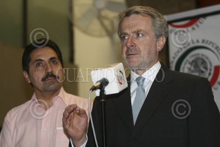 MÉXICO,D,F 11ABRIL2008.- Santiago Creel presidente de la mesa directiva de la camara de senadores en conferencia de prensa acompañado por Rubern Camarillo Secretario de la comision de energia del senado en donde afirmo que no esta dispuesto a negociar con el FAP. FOTO: SASHENKA GUTIERREZ/CUARTOSCURO.COM