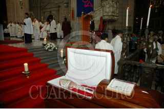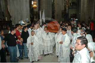 MÉXICO, D.F., 13ABRIL2008.- El cuerpo del ex Arzobispo y cardenal Ernesto Corripio Ahumada es llevado a una cripta dentro de la Catedral Metropolitana al termino de la misa dominical que oficio el cardenal Norberto Rivera Carrera. FOTO:RODOLFO ANGULO /CUARTOSCURO.COM