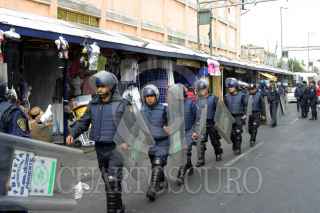 MÉXICO, D.F, 14ABRIL2008.- Inspectores de la delegación Cuahutemoc auxiliados por granaderos rrecorrieron el eje 1 Norte para decomisar mercancia a vendedores ambulantes que invaden los carriles de vialidad.. FOTO: PEDRO MARRUFO/CUARTOSCURO.COM