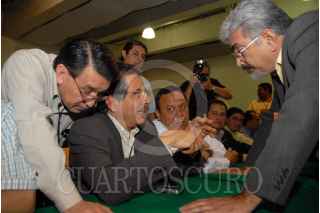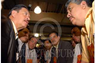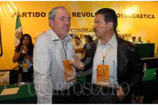 MÉXICO D.F., 19ABRIL2008.- Graco Ramirez Senador perredista acompañado por Jesus Ortega toman un receso durante el X Pleno Extraordinario del VI consejo Nacional del PRD, realizado en Expo Reforma. FOTO: SASHENKA GUTIERREZ/CUARTOSCURO.COM