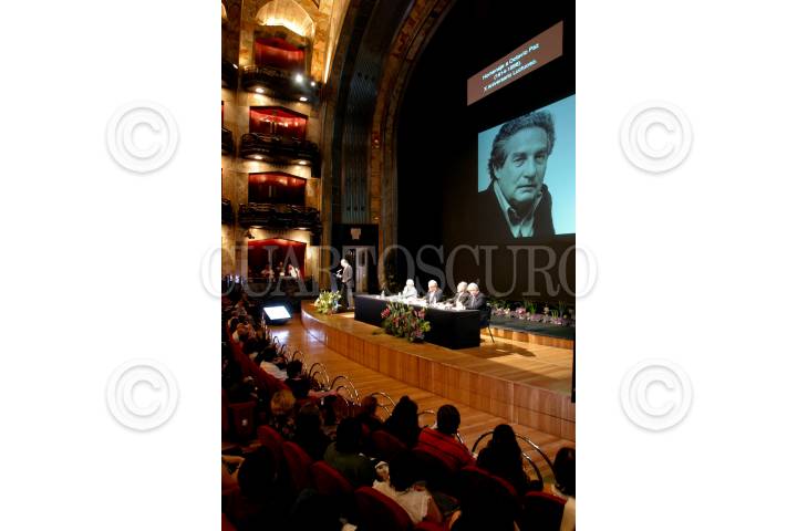 MÉXICO, D.F., 19ABRIL2008.- Se realizó el décimo aniversario luctuoso de el escritor Octavio Paz, en el Palacio de Bellas Artes. En la mesa principal estuvieron los escritores Michel Deguy, Enrique Krauze, Derek Walcott, Teodoro González de León y Orlando Gómez, quienes comentaron acerca de la obra del autor de "Laberintos de la Soledad" y su relación con él. FOTO: MOISÉS PABLO/CUARTOSCURO.COM