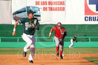 VILLAHERMOSA, TABASCO, 20ABRIL2008.- Acciones del tercer juego de la serie entre los Olmecas de Tabasco contra los Petroleros de Minatitlan que se realiza en el Centenario del 27 de Febrero, en donde los locales ganan dos carreras a uno en el cierre de la tercer entrada. FOTO: MARCO POLO GUZMÁN HERNÁNDEZ/CUARTOSCURO.COM