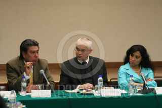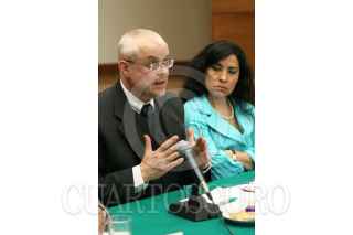 MÉXICO D.F. 21ABRIL2008.-Vladimir Spidla, comisionado europeo para igualdad y oportunidades durante la reunión de trabajo con la Comisión de Seguridad Social en la Cámara de Diputados.En la imagen es acopañado por la diputada Ruth Zavaleta, presidenta de la mesa directiva(PRD). FOTO: GUILLERMO PEREA /CUARTOSCURO.COM