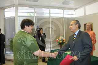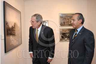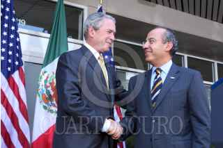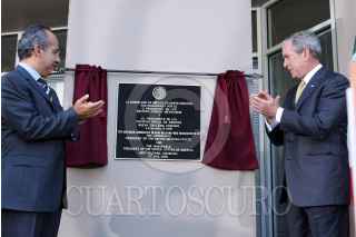 NUEVA ORLEANS, LUISIANA, 21ABRIL2008.- El presidente de México, Felipe Calderón Hinojosa, acompañado del presidente de Estados Unidos George W. Bush, durante la develación de la placa en la inauguración de la nueva sede del consulado de México en Nueva Orleans. FOTO: ALFREDO GUERRERO/CUARTOSCURO.COM