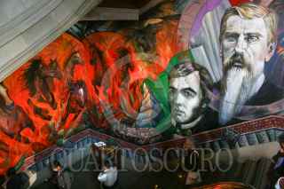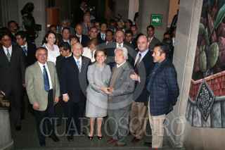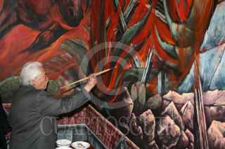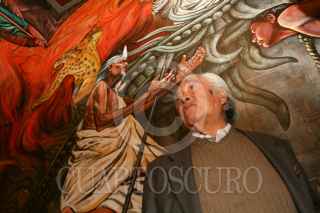 MÉXICO D.F., 21ABRIL2008.- Luis Ninshikawa posa frente a su mural de la Justicia , el cuál se encuentra en la Suprema Corte Justicia de la Nación. FOTO: SÁSHENKA GUTIÉRREZ/CUARTOSCURO.COM