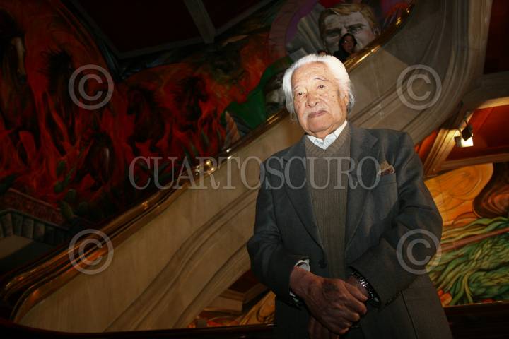 MÉXICO D.F., 21ABRIL2008.- Luis Ninshikawa posa frente a su mural de la Justicia , el cuál se encuentra en la Suprema Corte Justicia de la Nación. FOTO: SÁSHENKA GUTIÉRREZ/CUARTOSCURO.COM