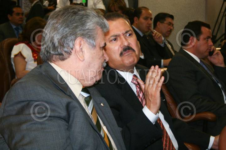 MÉXICO D.F., 21ABRIL2008.- Manlio Fabio Beltrones senador del PRI saluda Francisco Labastida senador del mismo partido al terminar la sesion realizada en torre caballito. FOTO: SASHENKA GUTIERREZ/CUARTOSCURO.COM
