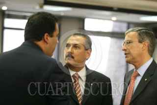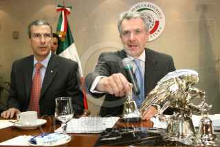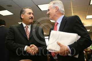MÉXICO D.F., 21ABRIL2008.- Manlio Fabio Beltrones senador del PRI saluda Francisco Labastida senador del mismo partido al terminar la sesion realizada en torre caballito. FOTO: SASHENKA GUTIERREZ/CUARTOSCURO.COM