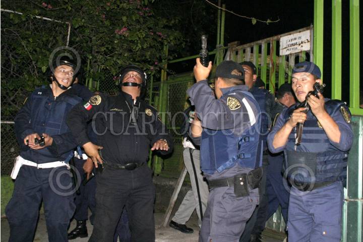 MÉXICO D.F., 22ABRIL2008.- Policias granaderos cerraron varias calles en el barrio de tepito durante el operativo de la PGR para decomisar mas de 100 toneladas de perfumes que ingresaron al país de contrabando. FOTO: PEDRO MARRUFO/CUARTOSCURO.COM