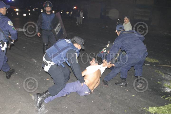 MÉXICO D.F., 22ABRIL2008.- Policias granaderos cerraron varias calles en el barrio de tepito durante el operativo de la PGR para decomisar mas de 100 toneladas de perfumes que ingresaron al país de contrabando. FOTO: PEDRO MARRUFO/CUARTOSCURO.COM