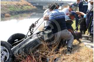 MÉXICO D.F., 27ABRIL2008.- Sobre avenida central a la altura del kilometro 20 del circuito mexiquense en ecatepec Sun auto cavalier cay[p al canal de aguas negras, bomberos encontraron los cuerpos de tres personas sin vida . FOTO: PEDRO MARRUFO/CUARTOSCURO.COM
