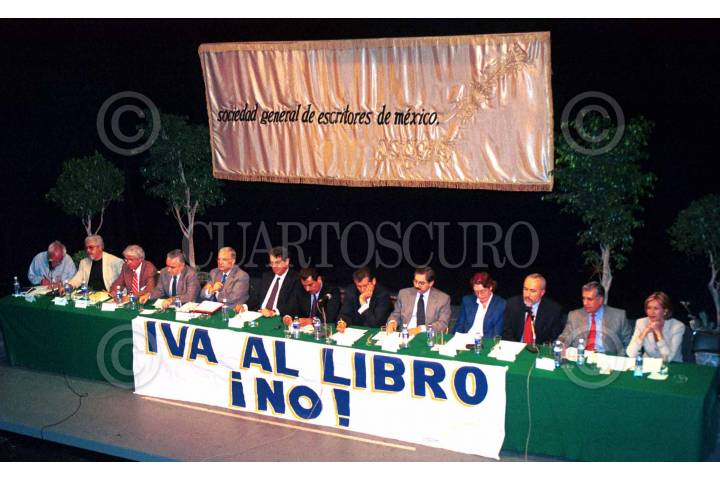 Mesa redonda en el SOGEM de escritores, legisladores y editores contra el IVA al libro. FOTO: David Bolaños/CUARTOSCURO.COM