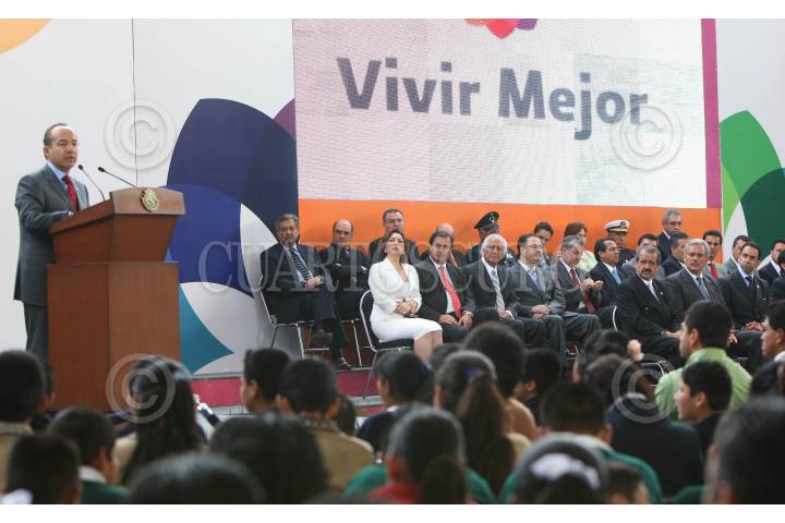 MÉXICO, D.F., 28ABRIL2008.- El presidente Felipe Calderon Hinojosa, anunció la estrategia de política social del gobierno federal denominada "Vivir Mejor". En el acto, realizado en el Museo de Antropología, lo acompañaron el secretario de Sedesol, Ernesto Cordero, de Hacienda, Agustin Carstens, y de Educación Pública, Josefina Vázquez Mota. FOTO: IMPERIO RESENDIZ/CUARTOSCURO.COM