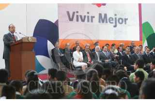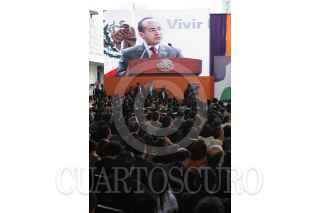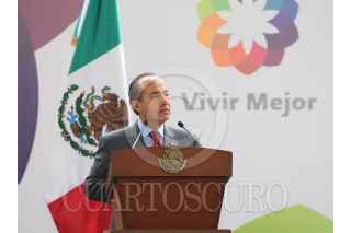 MÉXICO, D.F., 28ABRIL2008.- El presidente Felipe Calderon Hinojosa, anunció la estrategia de política social del gobierno federal denominada "Vivir Mejor". En el acto, realizado en el Museo de Antropología, lo acompañaron el secretario de Sedesol, Ernesto Cordero, de Hacienda, Agustin Carstens, y de Educación Pública, Josefina Vázquez Mota. FOTO: IMPERIO RESENDIZ/CUARTOSCURO.COM