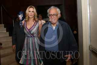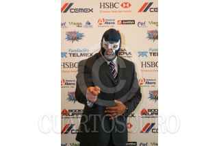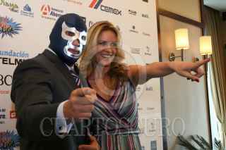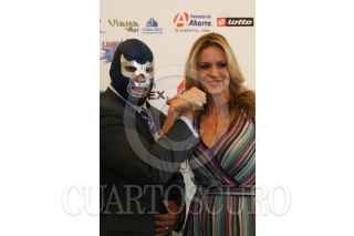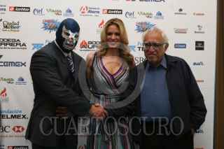 MÉXICO D.F. 28ABRIL2008.-El luchador Blue Demon, la conductora de Television, Rebeca de Alba y el escritor Carlos Mosivais, en conferencia de prensa anunciaron el proyecto "Kilometros de Lucha" que consiste en una carrera y una caminata de 5 Kms. que se reaizara el proximo 25 de Mayo en el Zócalo de la ciudad, con la finalidad de recaudar fondos para apoyar a niños que padecen de la enfermedad del cáncer. FOTO: GUILLERMO PEREA /CUARTOSCURO.COM