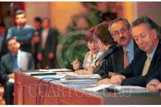 El titular de Hacienda y Crédito Público, Francisco Gil Díaz acompañado de subsecretarios y de la vocera presidencial Martha Sahagún informo sobre la reforma fiscal que el ejecutivo envio al congreso para su analisis y aprobación; esto sucedio en el salón Adolfo López Mateos de los Pinos. FOTO: Victoria Valtierra/CUARTOSCURO.COM