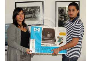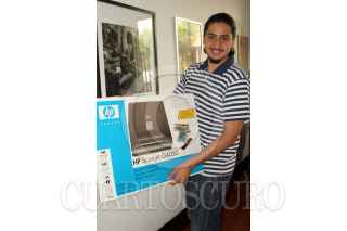 México D.F., a 29 de Abril de 2008.- La empresa HP entrego a Gerardo Tijera, estudiante de Comunicacion de la UAM el scaner G4050. Como ganador de la trivia HP-Revista Cuartoscuro. FOTO: VICTORIA VALTIERRA/CUARTOSCURO.COM