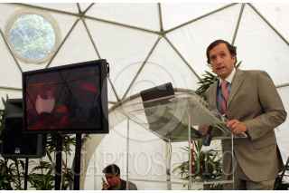 México D.F., a 29 de Abril de 2008.- Igor Boguslavsky y Lea Stack de la empresa Belmont durante la presentación de la campaña de reciclaje de telefonos celulares, en México. Esta mañana en el parque España de esta capital se llevo acabo el evento. FOTO: VICTORIA VALTIERRA/CUARTOSCURO.COM