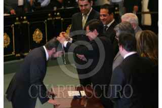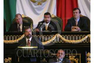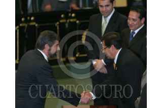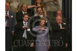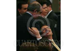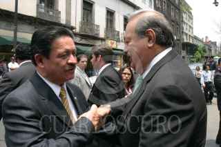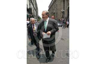 MÉXICO D.F. 28ABRIL2008.- Carlos Slim Helú, fundador del grupo Carso, al salir del recinto de la Asamblea Legislativa del DF, en la cual se condecoro con la medalla al mérito ciudadano a Juan Ramón de la Fuente, ex-rector de la UNAM. FOTO: MOISÉS PABLO/CUARTOSCURO.COM
