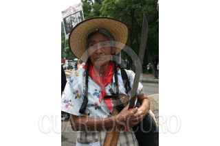 MÉXICO,D.F.04,MAYO,2008.- Para recordar que hace dos años la policia del Estados de México y la PFP entrará a San Salvador Atenco, un gruo de campesinos y ciudadanos de este pueblo realizaron una marcha del Angel de la Independencia a la Suprema Corte de la Justicia. Los manifestantes, con machete en mano, recordaro la muerte de dos personas y que decenas de personas fueron golpeadas, violadas y encarceladas, entre las consiganas exigen a las autoridades su liberación. FOTO: RICARDO CASTELAN /CUARTOSCURO.COM.