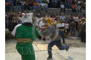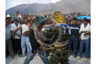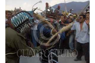ZITATLA, GUERRERO 05MAYO2008.- En una tradicion milenaria habitantes del municipio de Zitlala region de la montaña baja del estado se disfrazan de tigres enredandose varios metros de riata en el cuerpo para posteriormente enfrentarse en la plazuela del centro de la poblacion donde inician con la "Pelea de Tigres" donde los contricantes se dan de riatazos en el cuerpo en un ritual que hacen cada año para la peticion de lluvias los pobladores de dicho lugar. FOTO: OSCAR ALVARADO/CUARTOSCURO.COM