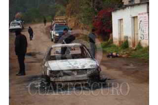 OAXACA, OAXACA 06MAYO2008.-Esta tarde en conferencia de prensa, familiares de las victimas asesinadas el pasado fin de semana, temen por su integridad y se alojan en Oaxaca desde el domingo. Un conflicto agrario entre Chalcatongo de Hidalgo, Tlaxiaco y esta población, provocó el sádico homicidio de tres personas, presuntamente por órdenes del ex presidente municipal Fredy Eucario Morales Arias, debido a un añejo conflicto agrario, el pasado fin de semana dos personas fueron asesinadas y una más quemada viva dentro de un taxi del sitio "Yundutia", presuntamente por órdenes del ex presidente de Santo Domingo Ixcatlán, Fredy Eucario Morales Arias. Segun las investigaciones policiacas se presume que el taxista Gustavo Castañeda Martínez fue roseado con gasolina y quemado vivo dentro de su vehículo; Inocencio Medina Bernabé fue asesinado con un rifle de asalto AK-47, conocido como "cuerno de chivo" y a Melesio Martínez Robles le cercenaron los genitales y las extremidades inferiores. FOTO: MAX NUÑEZ/CUARTOSCURO.COM