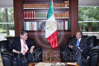 MEXICO, D.F. 12MAYO2008.- El presidente de México, Felipe Calderón Hinojsa sostuvo ésta tarde una reunión de trabajo con el Sr. Gerd Leipold Arendar, director ejecutivo de Breenpeace International, en la Residencia Oficial de los Pinos. FOTO: ALFREDO GUERRERO/CUARTOSCURO.COM