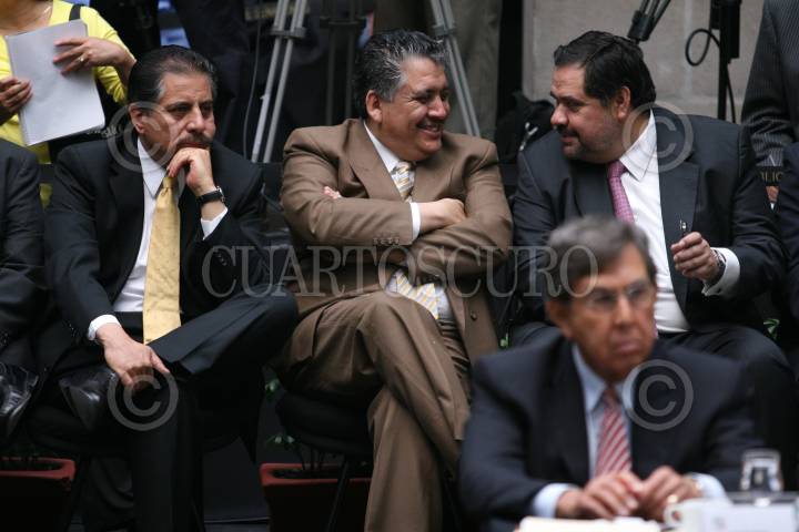 MÉXICO, D.F., 13MAYO2008.- Los senadores Pablo Gómez, Yeidckol Polevnsky coversan con Beatriz Paredes, dirigente nacional del PRI, durante el debate sobre "Los Principios que deben regir la Reforma Energética en México" realizado en el Senado de la República. FOTO: MOISÉS PABLO/CUARTOSCURO.COM