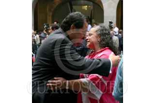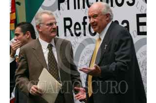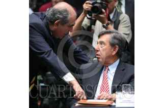 MÉXICO, D.F., 13MAYO2008.- El senador Pablo Gómez platica con Cuauhtémoc Cárdenas, líder nacional del PRD, durante el debate sobre "Los Principios que deben regir la Reforma Energética en México" realizado en el Senado de la República. FOTO: MOISÉS PABLO/CUARTOSCURO.COM
