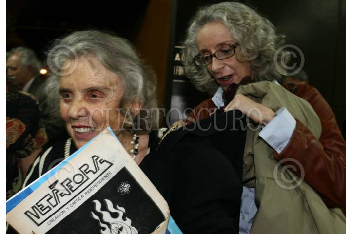 MÉXICO, D.F., 13MAYO2008.- Las escritoras Martha Lamas y Elena Poniatowska, a su salida de la presentación de el catalogo "Memorial del 68" llevado acabo en el Centro Cultural Universitario Tlatelolco. FOTO: SAUL LOPEZ/CUARTOSCURO.COM