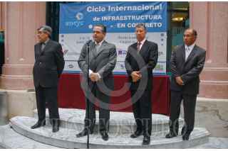 MÉXICO, D.F., 14MAYO2008.- Daniel Damazo, Jorge Sanchez Laparade, director general de IMCYC (Instituto Mexicano del Cemento y Concreto); Osmin Rendón y Donato Figueroa anunciaron en conferencia el Ciclo Internacional de Infraestructura en Concreto que se realizará en el World Trade Center del 2 al 10 de Junio. FOTO: RODOLFO ANGULO/CUARTOSCURO.COM
