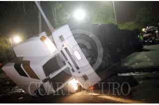 MÈXICO D.F., 15MAYO2008.- Alrededor de las 4 de la mañana, un trailer con 25 toneladas de jabòn en polvo se volco en la lateral del periferico norte a la altura de ciudad satelite con direcciòn al norte, lo que provoco cierre de carriles por mas de seis horas. FOTO:LUZ ACEVEDO/CUARTOSCURO.COM