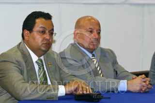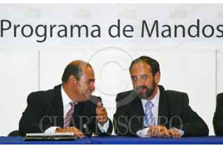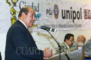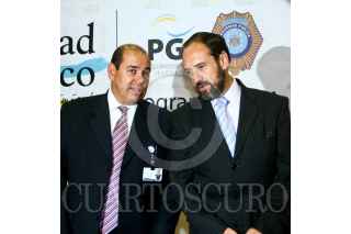 MÉXICO, D.F 20MAYO2008.- Luis Genero Vázquez Rodríguez, director general del Estado Mayor de la Policía Judicial, quien será el coordinador de la UNIPOL, y Miguel Amelio Gómez, jefe general de la Policía Judicial local, durante la presentación de esta nueva policía en la delegación Benito Juárez. FOTO: ISAAC ESQUIVEL/CUARTOSCURO.COM
