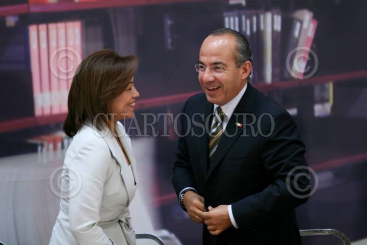 MÉXICO, 21MAYO2008.- José Enrique Villa Rivera, director general del IPN y Felipe Calderón Hinojosa, Presidente de México, durante la ceremonia del día del Politécnico y la entrega de la presea "Lázaro Cárdenas", que se realizó en el Palacio Nacional. FOTO: MOISÉS PABLO/CUARTOSCURO.COM