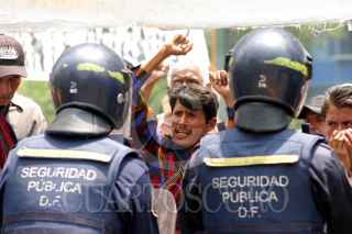 MÈXICO, D.F., 21MAYO2008.- Integrantes de los 400 pueblos se enfrentaron con policias granaderos a pedradas cuando se manifestaron en la explanada del monumento a la madre, hubo varios manifestantes entre lesionados y granaderos. FOTO: IVAN MENDEZ/CUARTOSCURO.COM