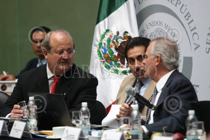 MÉXICO, D.F., 27MAYO2008.-Pablo Mulas del Pozo, Martín Esparza, Odon del Buen Rodríguez, durante su participación en el debate de la reforma energética en el senado de la República. FOTO: SASHENKA GUTIERREZ /CUARTOSCURO.COM