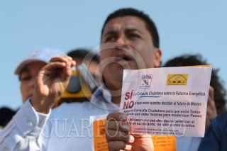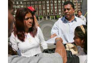 MÉXICO, D.F., 01JUNIO2008.- El asambleista perredista Humberto Morgan Colón, encabezó un volanteó en la plancha del Zócalo, para promover la consulta ciudadana en torno a la Reforma Energética que actualmente se discute en el Senado de la República a lo cual señalo que es indispensable la opinión ciudadana y que una decisión tan importante no sea tomada por unos cuantos. FOTO: MOISÉS PABLO/CUARTOSCURO.COM