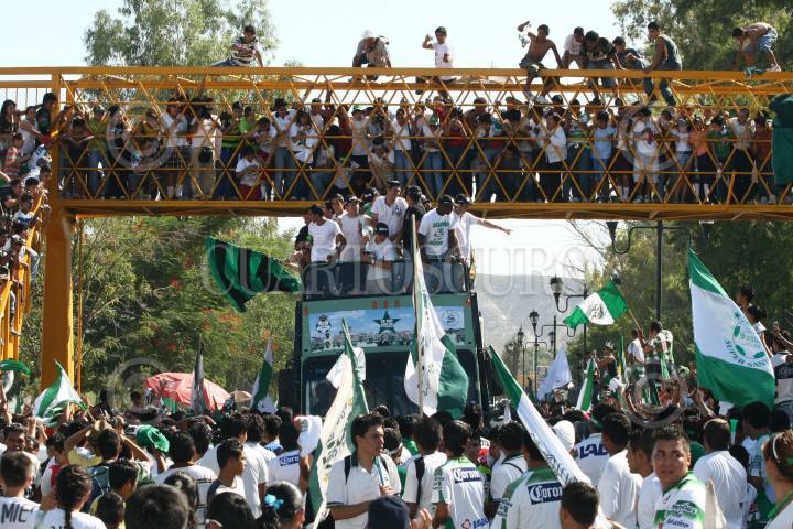LERDO, DURANGO O2JUNIO2008.- Despúes de que el equipo de Santos se coronara como campeones del torneo de clausra 2008 al derrotar al equipo de cruz azul, esta tarde se dieron cita en el municipio de Lerdo para hacer un recorrido en un camión descubierto hacia Torreón. FOTO: SASHENKA GUTIERREZ/CUARTOSCURO.COM