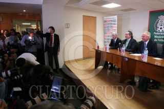 MÉXICO, D.F., 03JUNIO2008.- Sven Goran Eriksson, fue presentado como el nuevo entrenador de la Selección Mexicana, tras una reunión de los dueños de los equipos en la Federación Mexicana de Futbol en la que se decidió su designación. En la imagen su equipo de trabajo T. Grip y H. Backe. FOTO: MOISÉS PABLO/CUARTOSCURO.COM