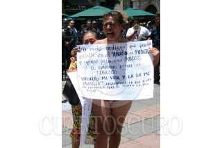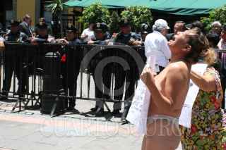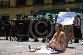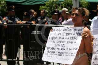 MÉXICO D.F. 03JUNIO2008.-Maribel Cruz López, enfermera del hospital del niño "Rodolfo Nieto Prado" en el estado de Tabasco, protesta denudándose por ser destituida de sus funciones al logar ser representante sindical, esto a las afueras de las instalaciones del Sendo de la República. FOTO: GUILLERMO PEREA/CUARTOSCURO.COM