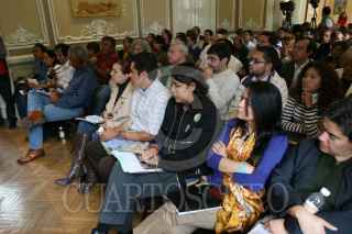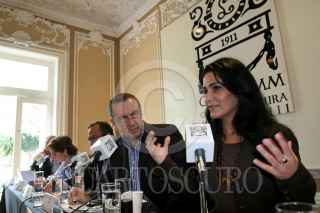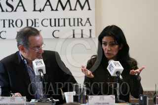 MÉXICO, D.F., 07JUNIO2008.- Los periodistas Carmen Aristegui, Alfredo Coronado, Andrés Oppenheimer y Lydia Cacho, durate el panel "La Cobertura del Crímen Organizado" organizado por El Comité para la Protección de los Periodistas en Casa Lamm. FOTO: MOISÉS PABLO/CUARTOSCURO.COM
