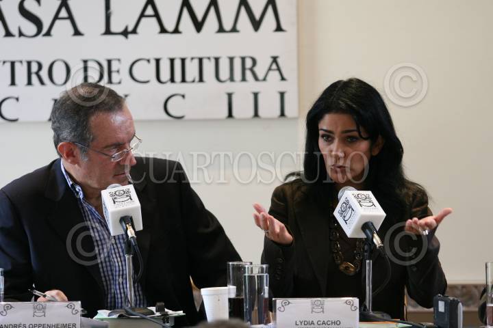 MÉXICO, D.F., 07JUNIO2008.- Los periodistas Carmen Aristegui, Alfredo Coronado, Andrés Oppenheimer y Lydia Cacho, durate el panel "La Cobertura del Crímen Organizado" organizado por El Comité para la Protección de los Periodistas en Casa Lamm. FOTO: MOISÉS PABLO/CUARTOSCURO.COM